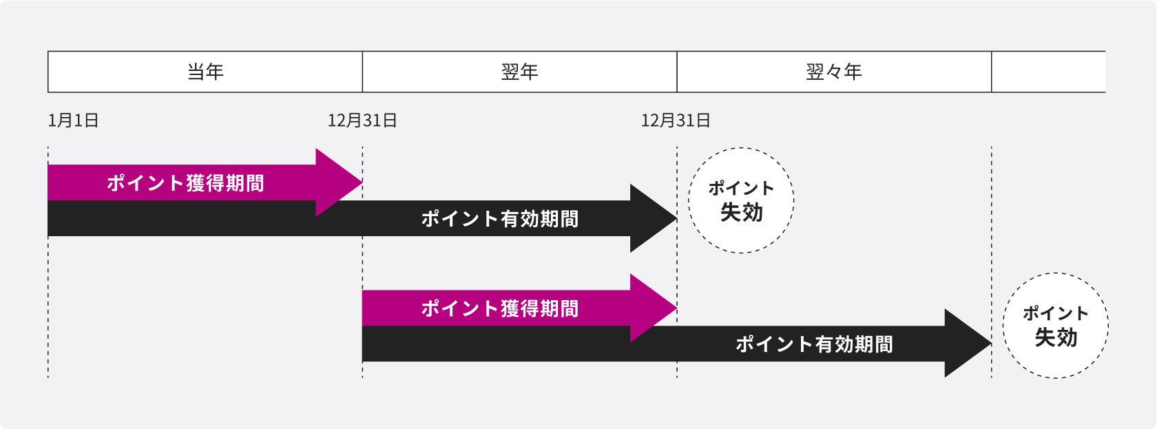 - 有効期限内にポイントのご利用が無かった場合、対象期間に取得したポイントは失効となります。