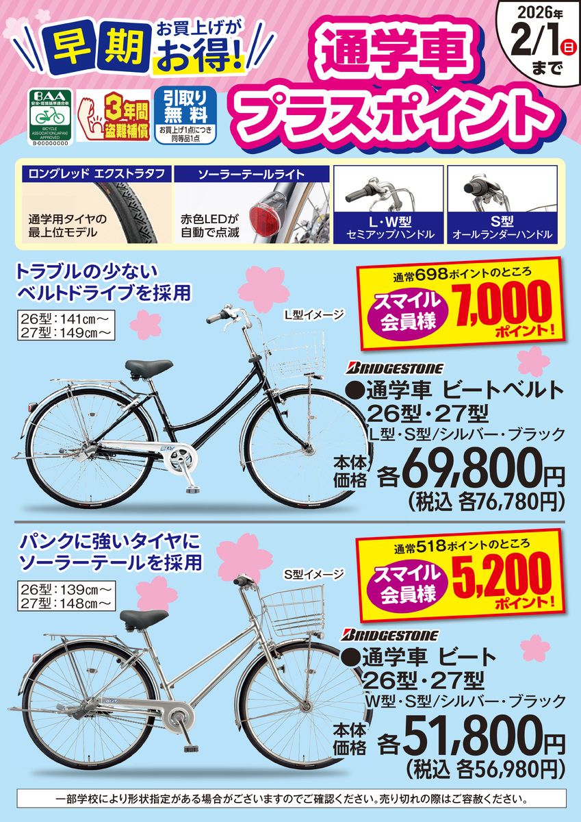 早期お買上げがお得!通学車プラスポイント