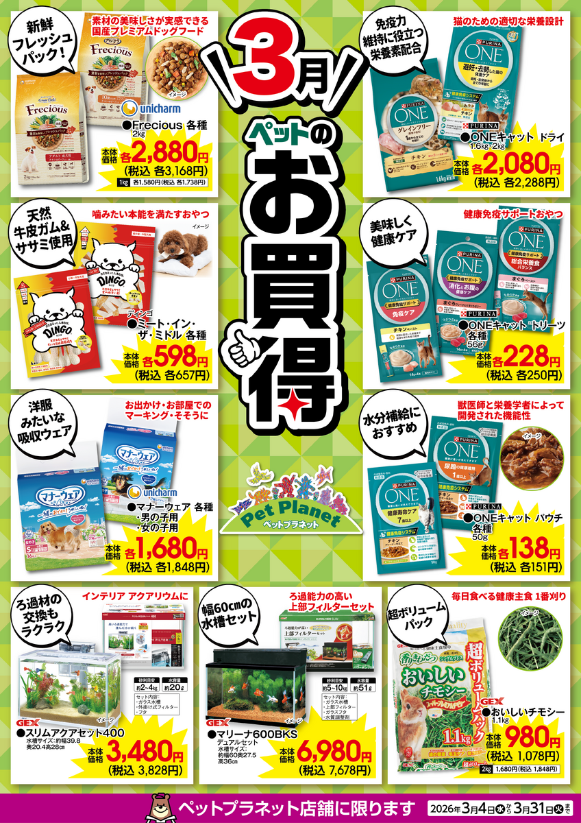 3月ペットのお買得!