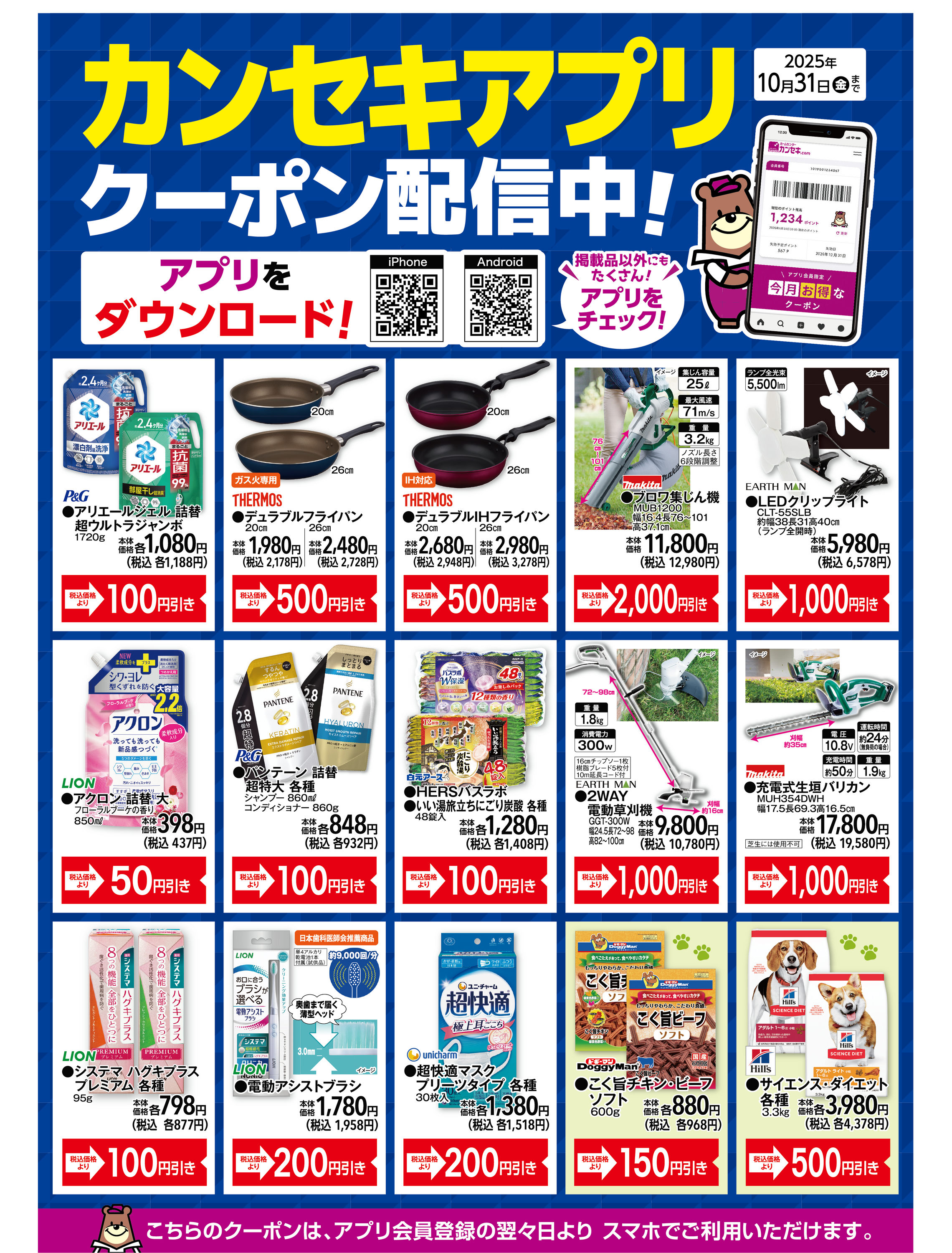 アプリ会員様限定☆クーポン配信中!カンセキアプリご登録でご利用いただけます。掲載商品の他にもたくさん!クーポンはこちらからアプリご登録はこちらから※こちらのアプリクーポンは、登録の翌々日よりご利用いただけます。