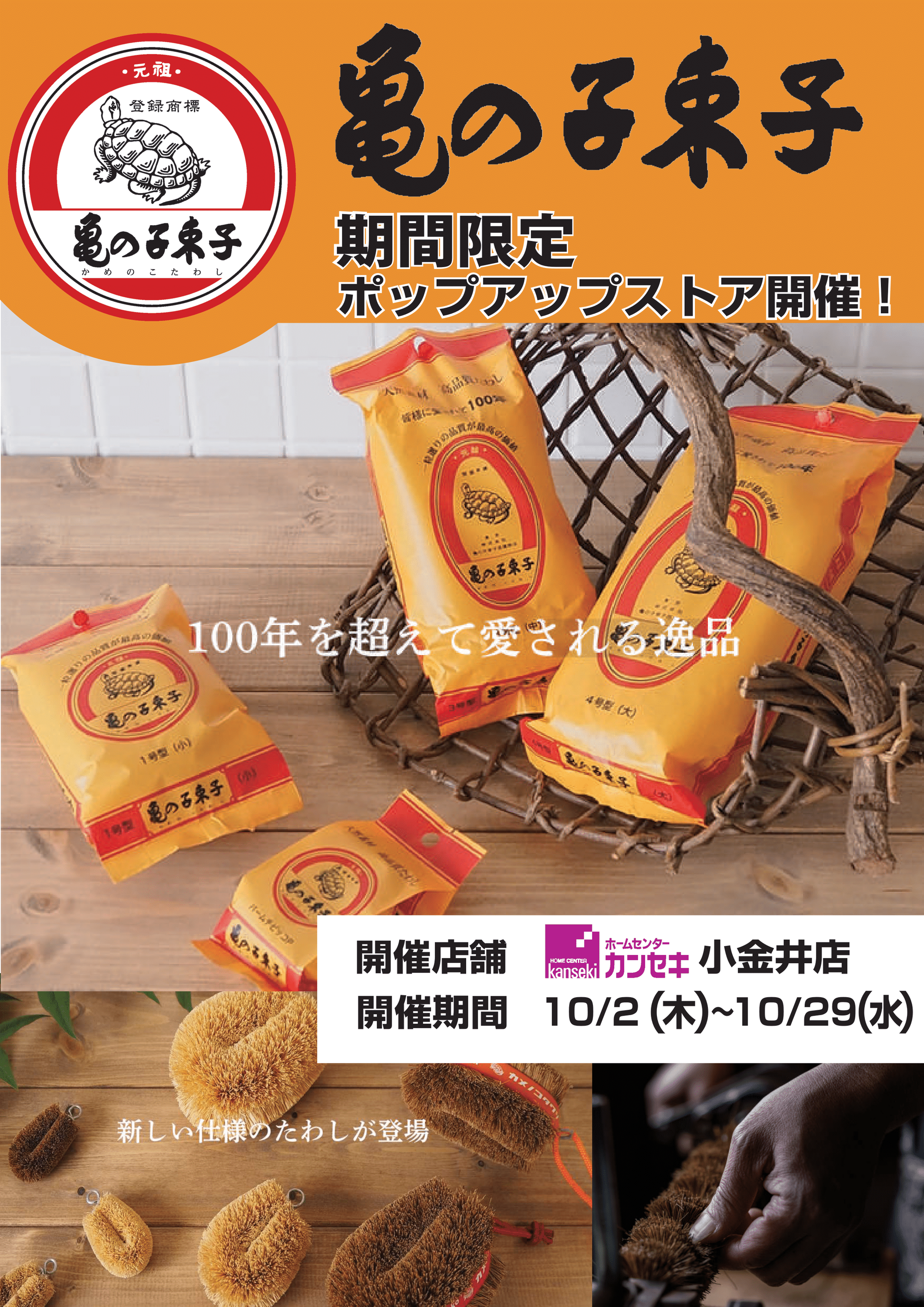 亀の子束子の期間限定ポップアップストアを小金井店で開催!