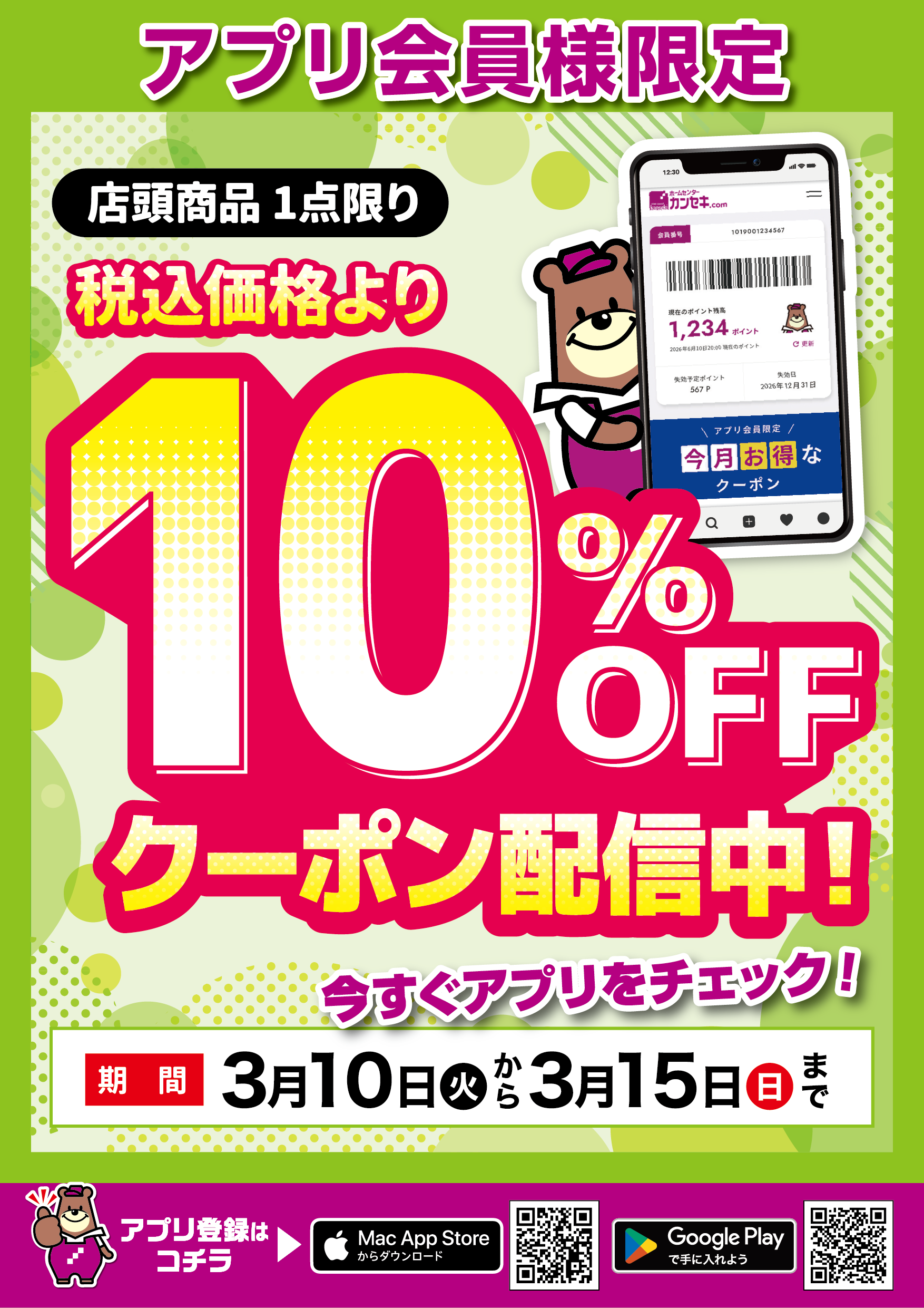 クーポン配信期間:3/10(火)~3/15(日)