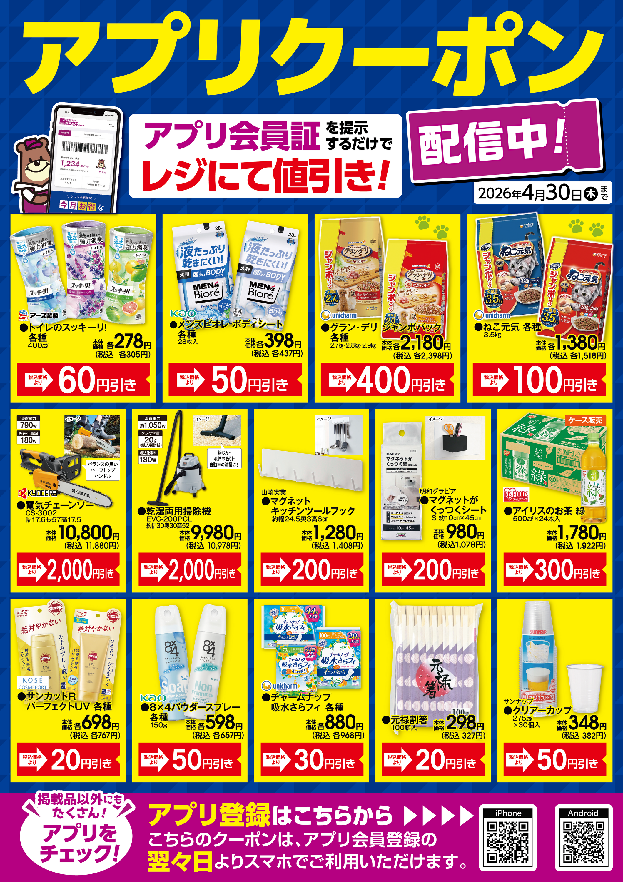 クーポンはこちらからアプリご登録はこちらから※こちらのアプリクーポンは、登録の翌々日よりご利用いただけます。
