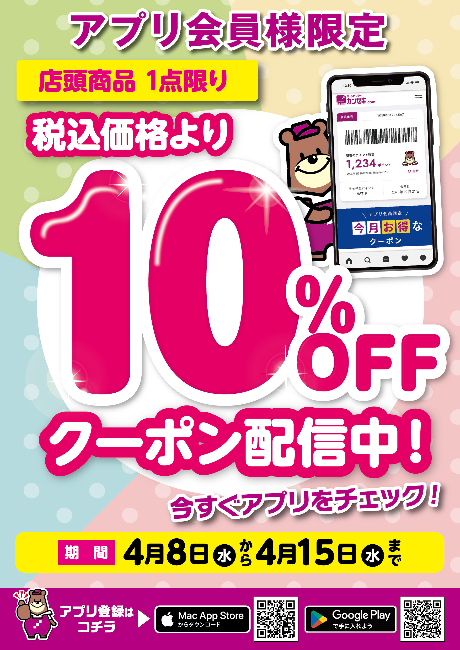 アプリ会員様限定☆ 10%OFFクーポン配信中!