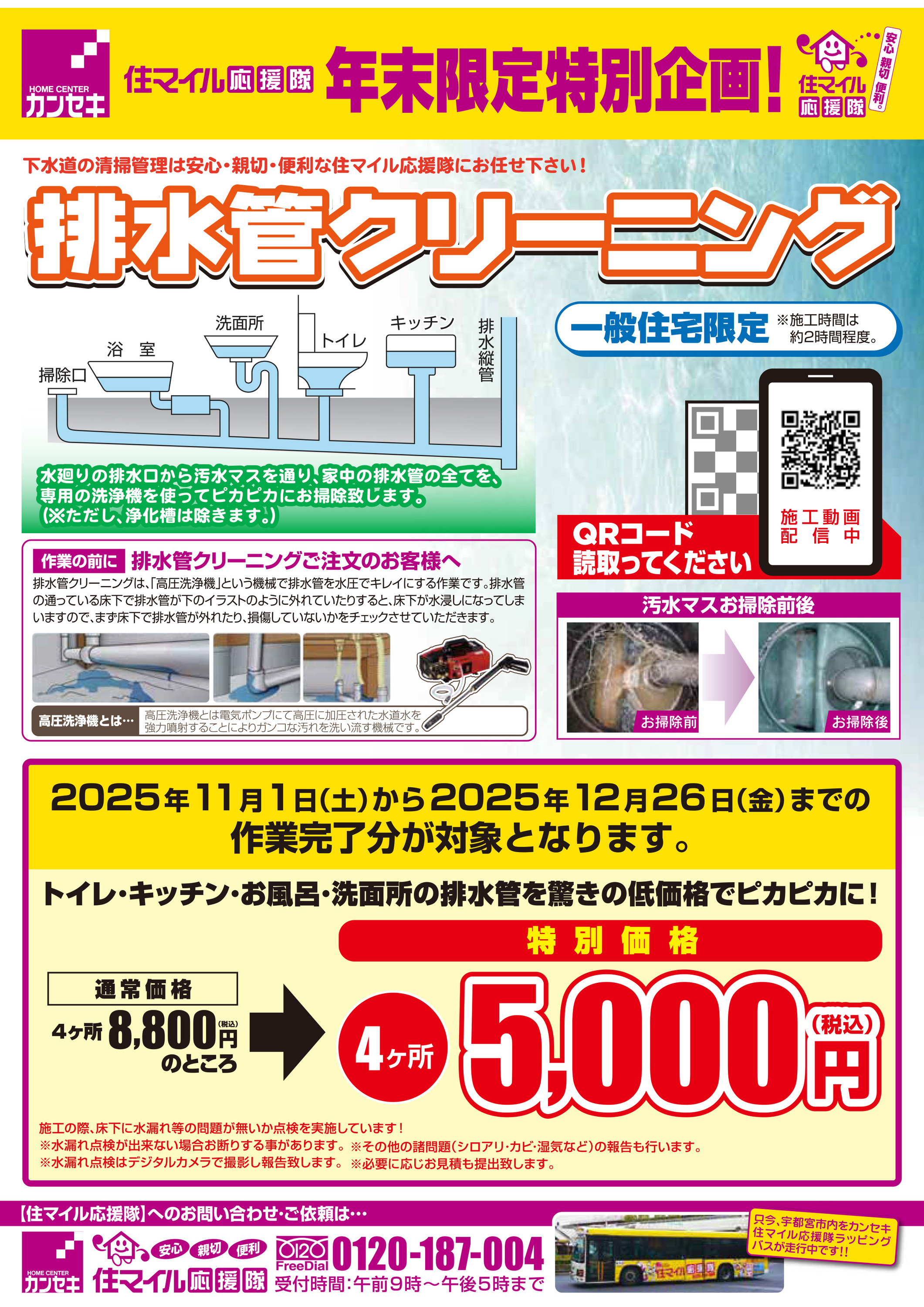 排水管クリーニングキャンペーン 12/26(金)まで!