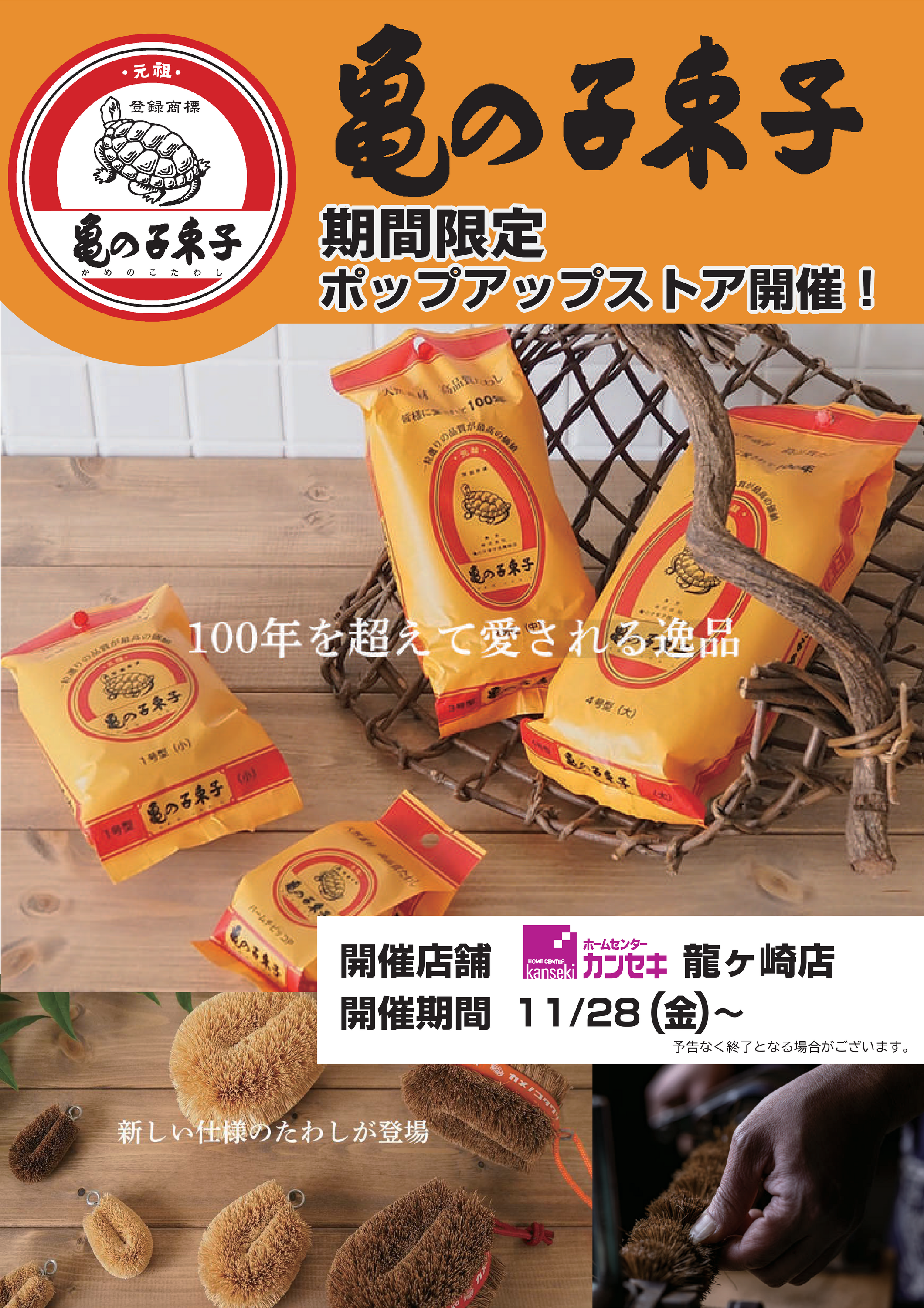 亀の子束子の期間限定ポップアップストアを龍ケ崎店で開催!