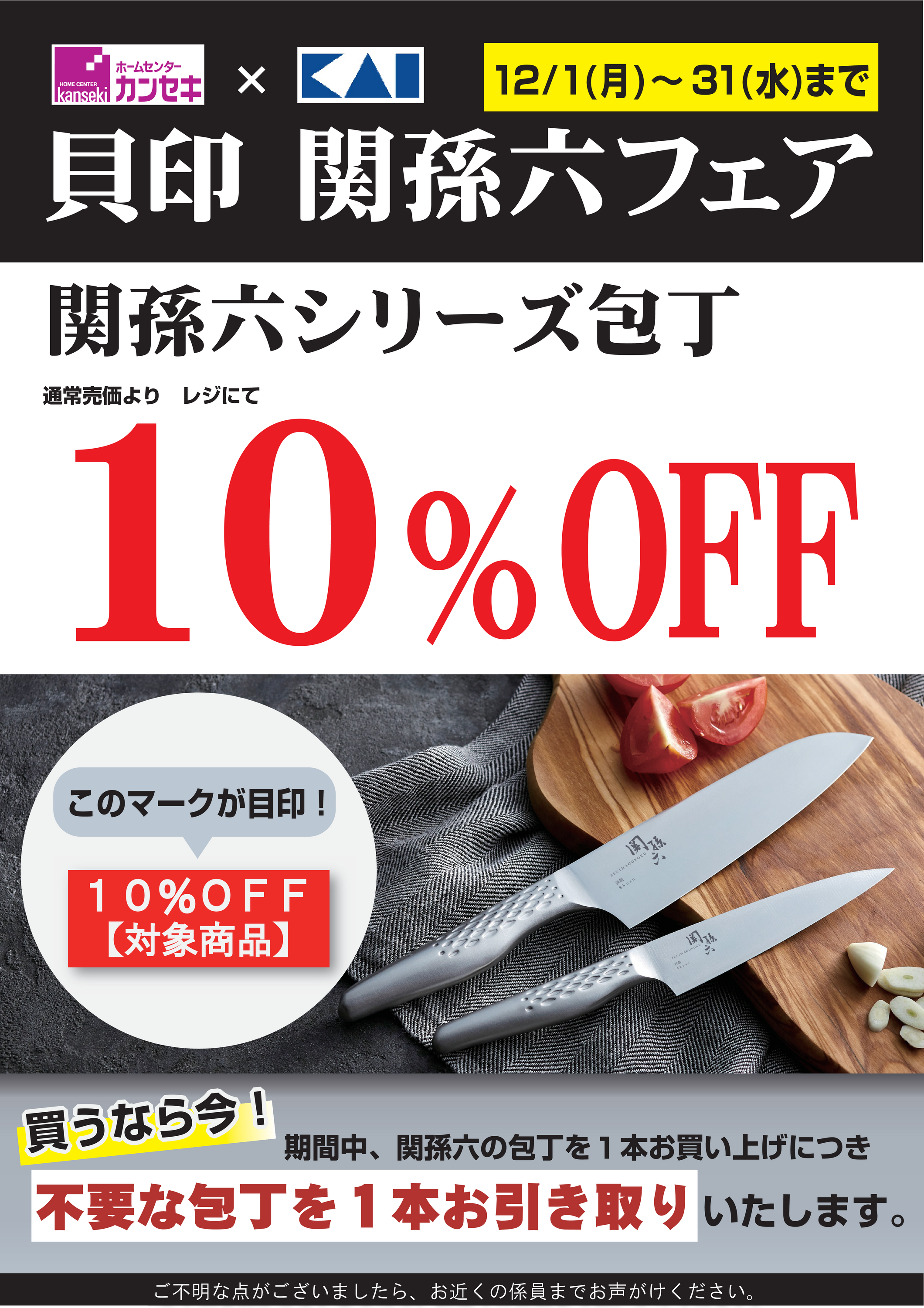 貝印の「関孫六シリーズ包丁」当社指定品が、当店通常税込み価格より10%OFF!お見逃しなく☆
