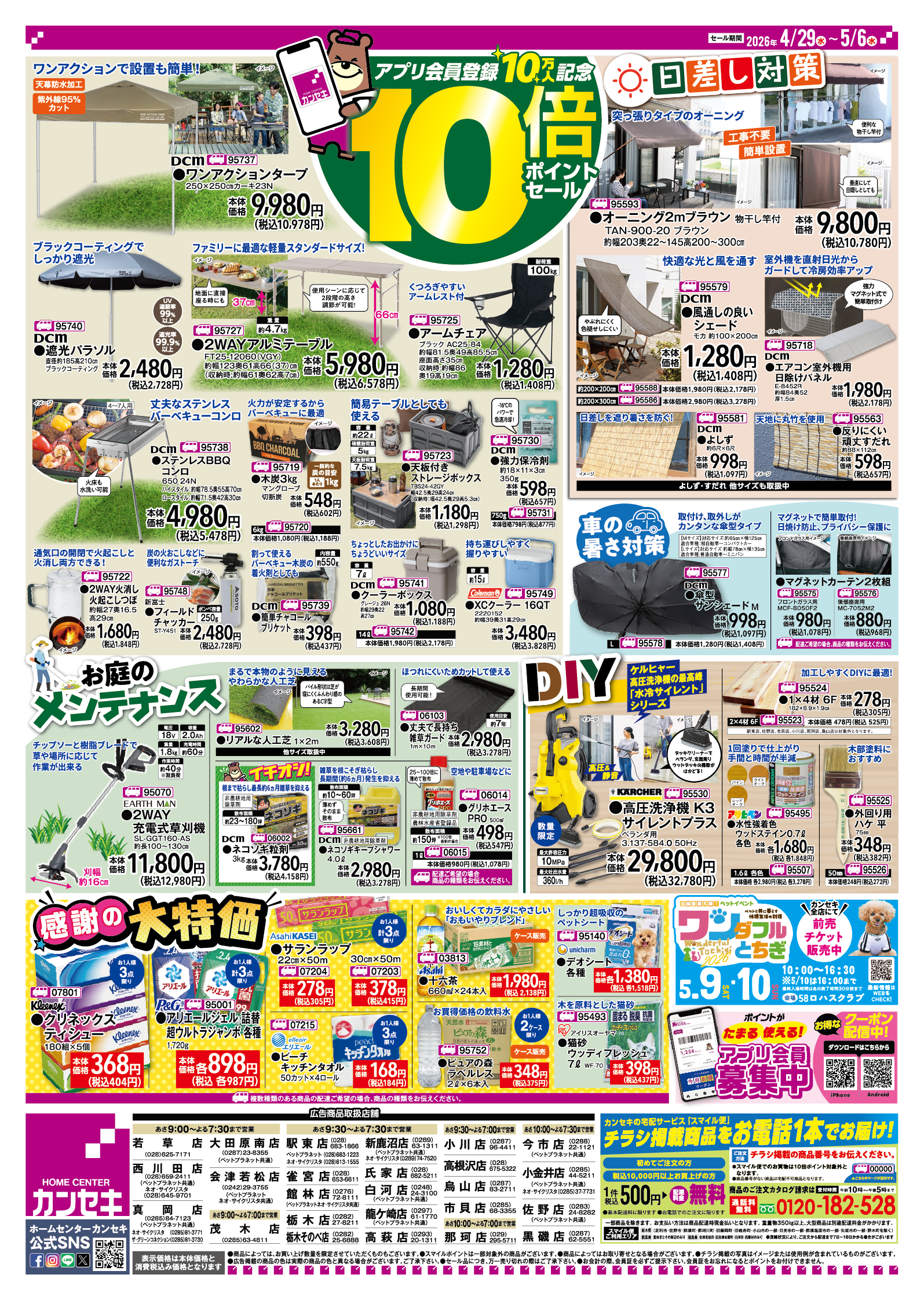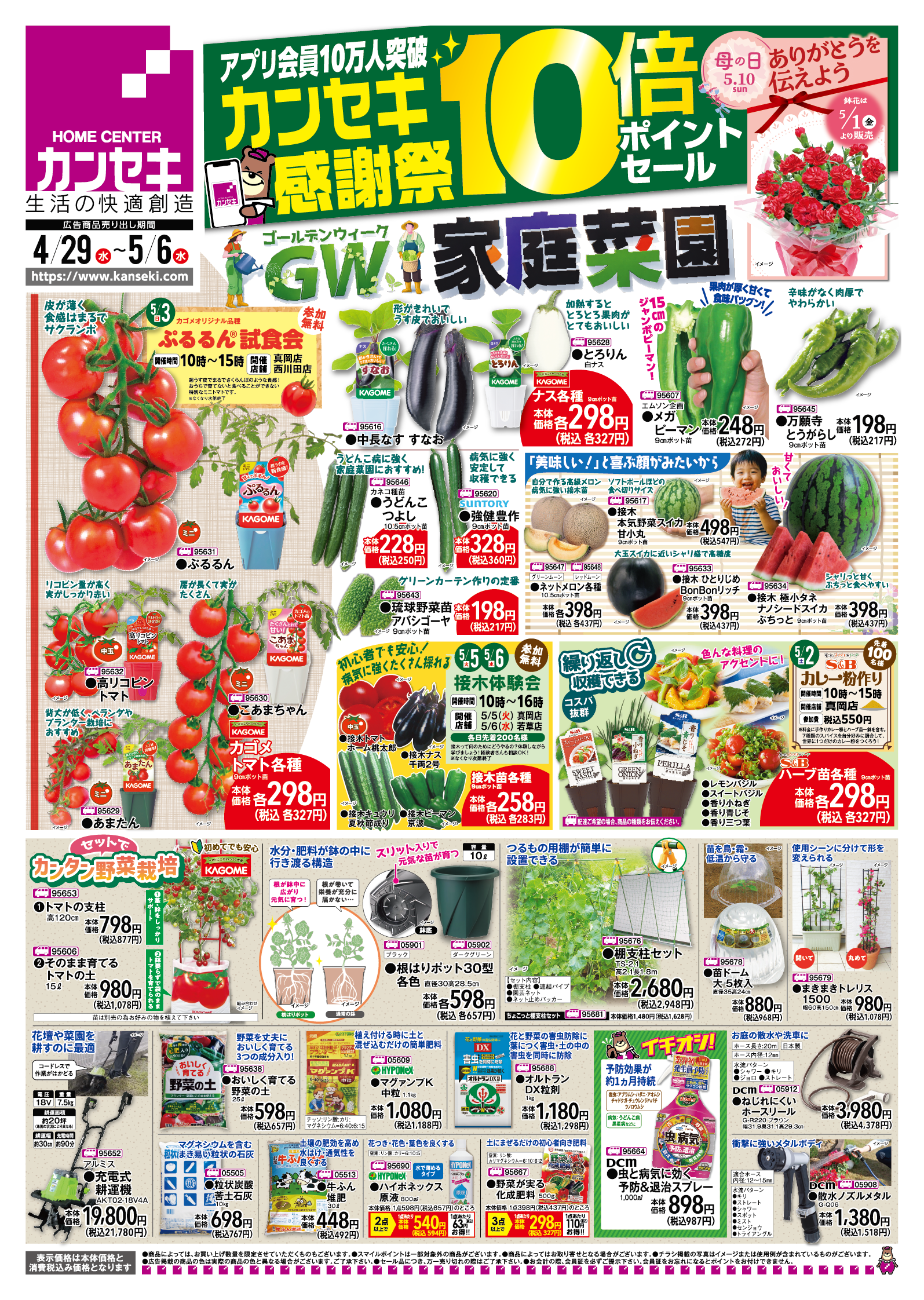 アプリ会員10万人突破記念!カンセキ感謝祭10倍ポイントセールは5月6日(水)まで!